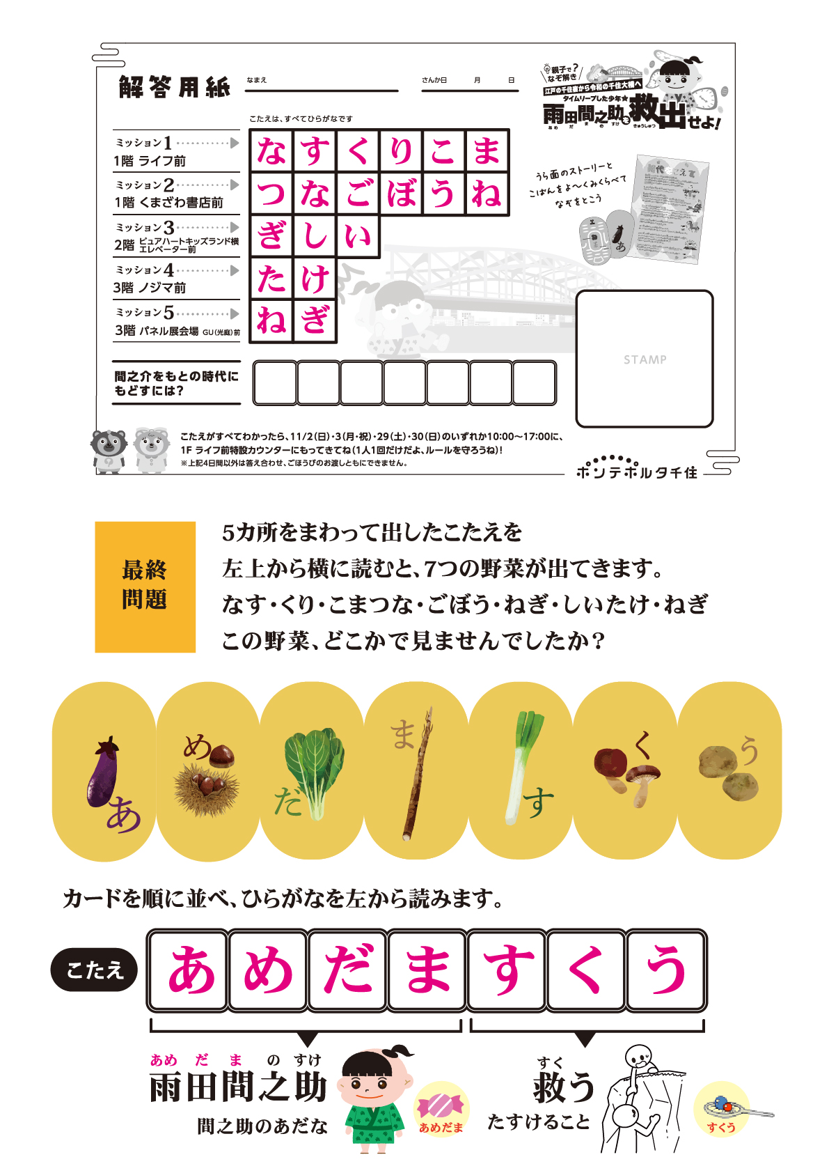 ★答え公開★千住宿開宿400年記念謎解き「タイムリープした少年 雨田間之助を救出せよ」
