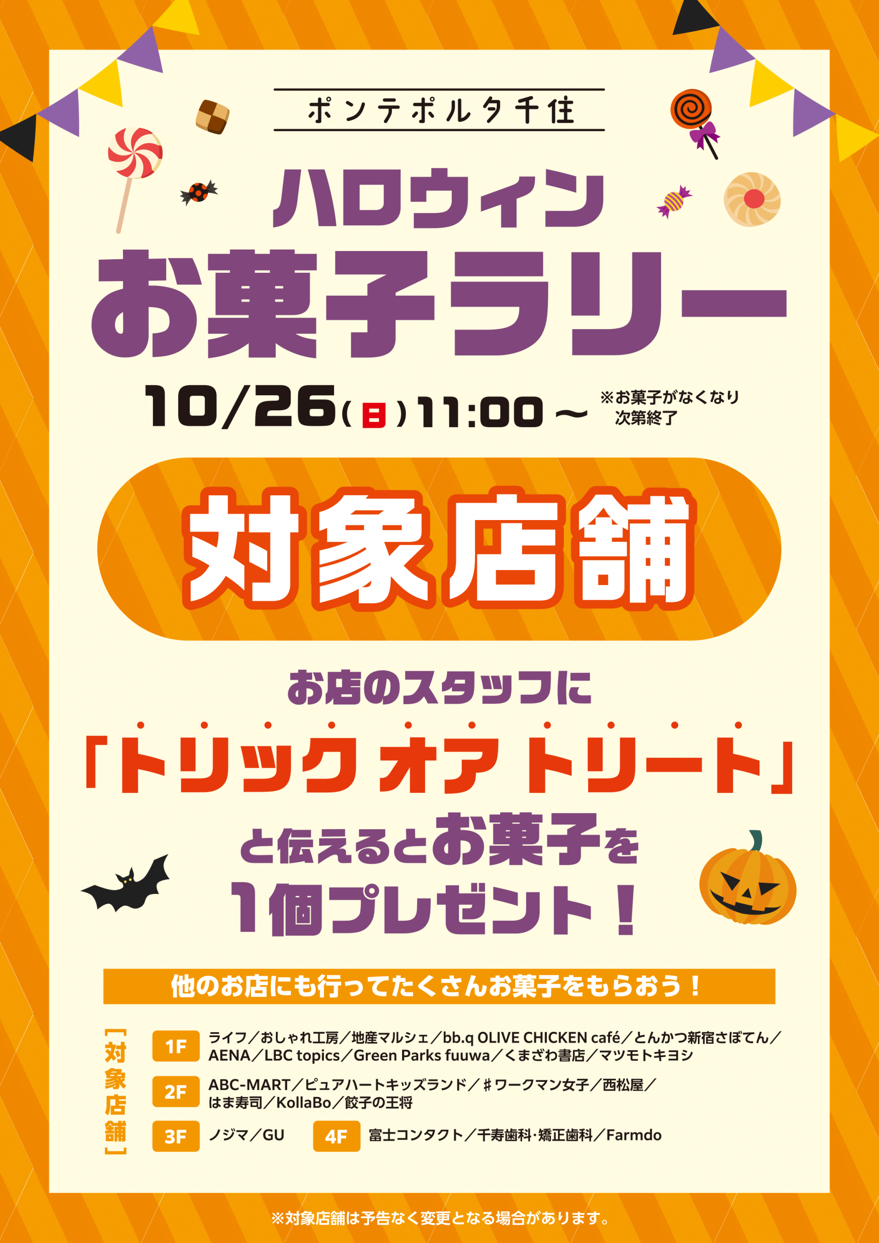 10月26日(日)ハロウィンお菓子ラリー★
