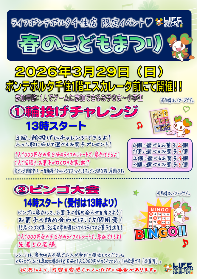 3月29日はライフへ行こう!春のこどもまつり開催🎆