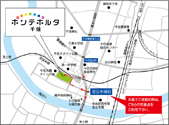 お車でご来館の際は、こちらの交差点をご利用ください。