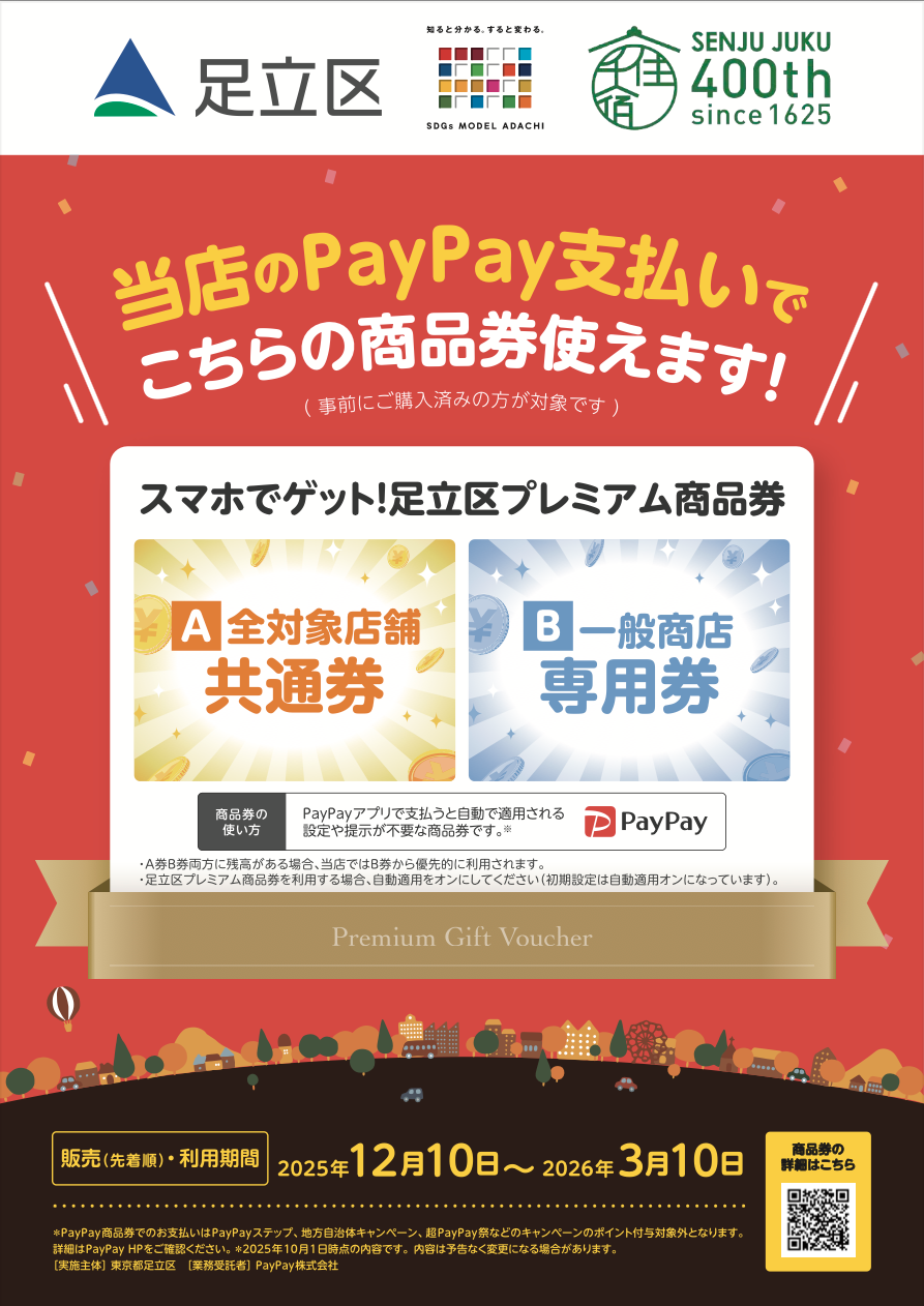 12/10(水)〜3/10(火)足立区プレミアム商品券(PayPay商品券)の利用はポンテポルタ千住で!