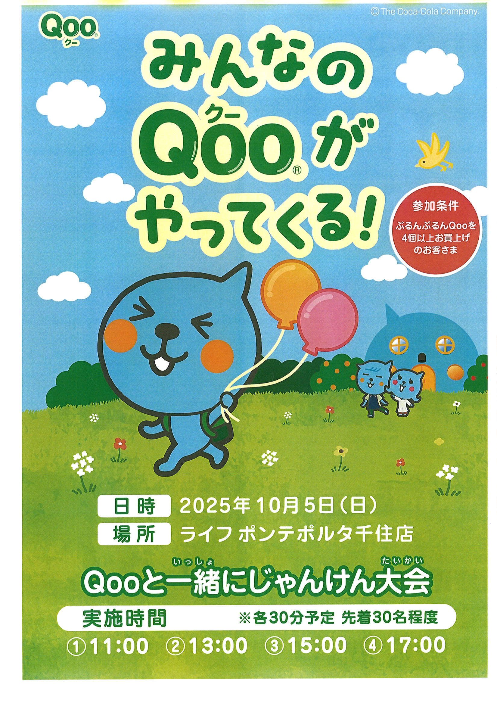 コカコーラでおなじみ【Qooちゃん】がお店に遊びに来るよ💙
